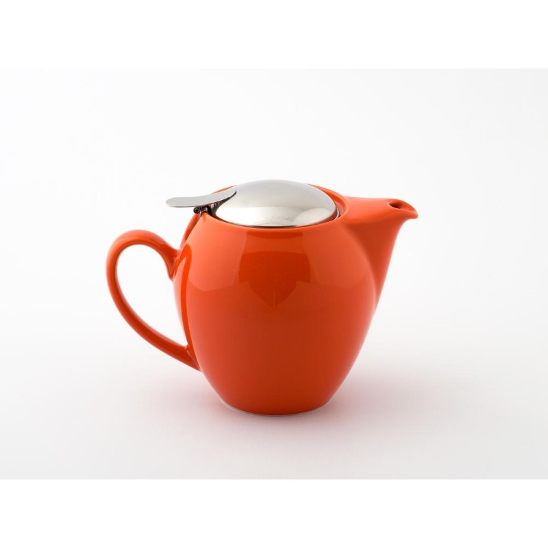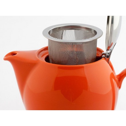Japanese ceramic teapot with stainless steel strainer and lid.